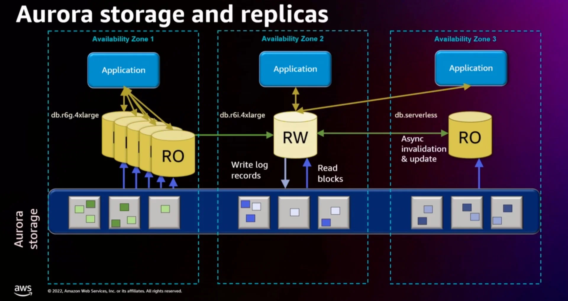 즉, Aurora의 Primary Instance나 Read Replica 모두 단일 Clustered 볼륨을 사용하게 된다는 점입니다.
