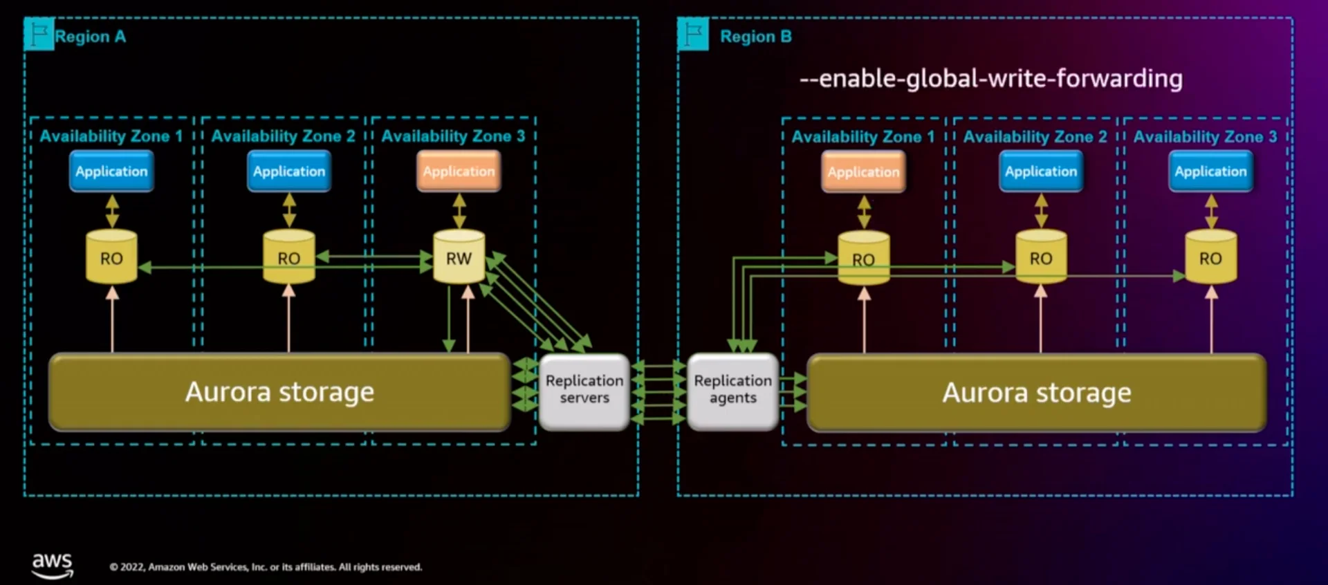 하지만 --enable-global-write-fowarding 옵션을 활성화하면 어드 DB Cluster에 쓰기 작업을 시도해도 최종적으로 Primary DB Cluster의 Primary Instance로 그 요청이 전달됩니다.