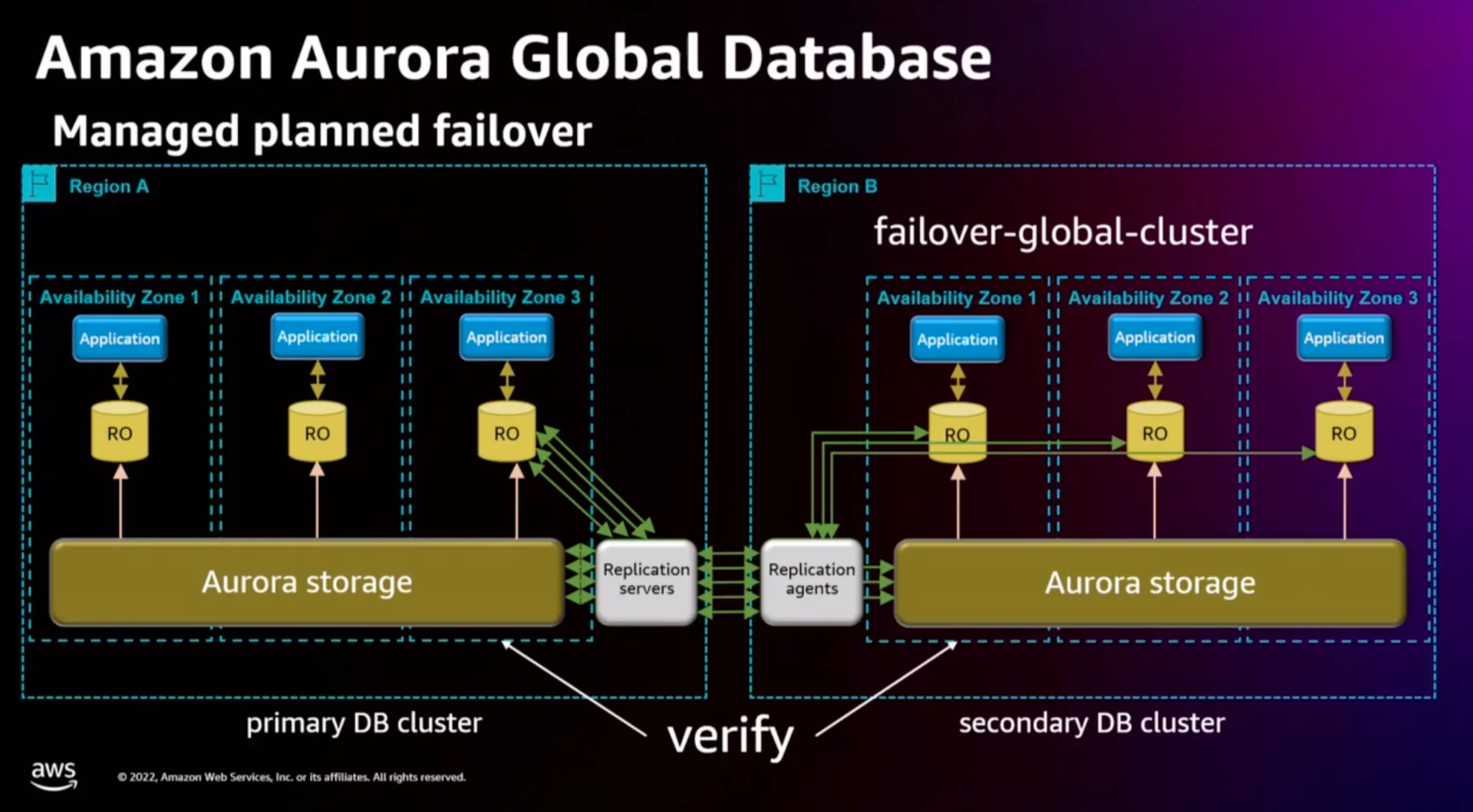 이 경우 일시적으로 기존 Primary DB Cluster의 Primary Instance에 대한 쓰기 작업이 중단되며, 데이터 동기화가 다되었는지 검증(Verify)하고 Primary DB Cluster가 교체될때까지 쓰기 작업에 장애가 발생할 수 있습니다.