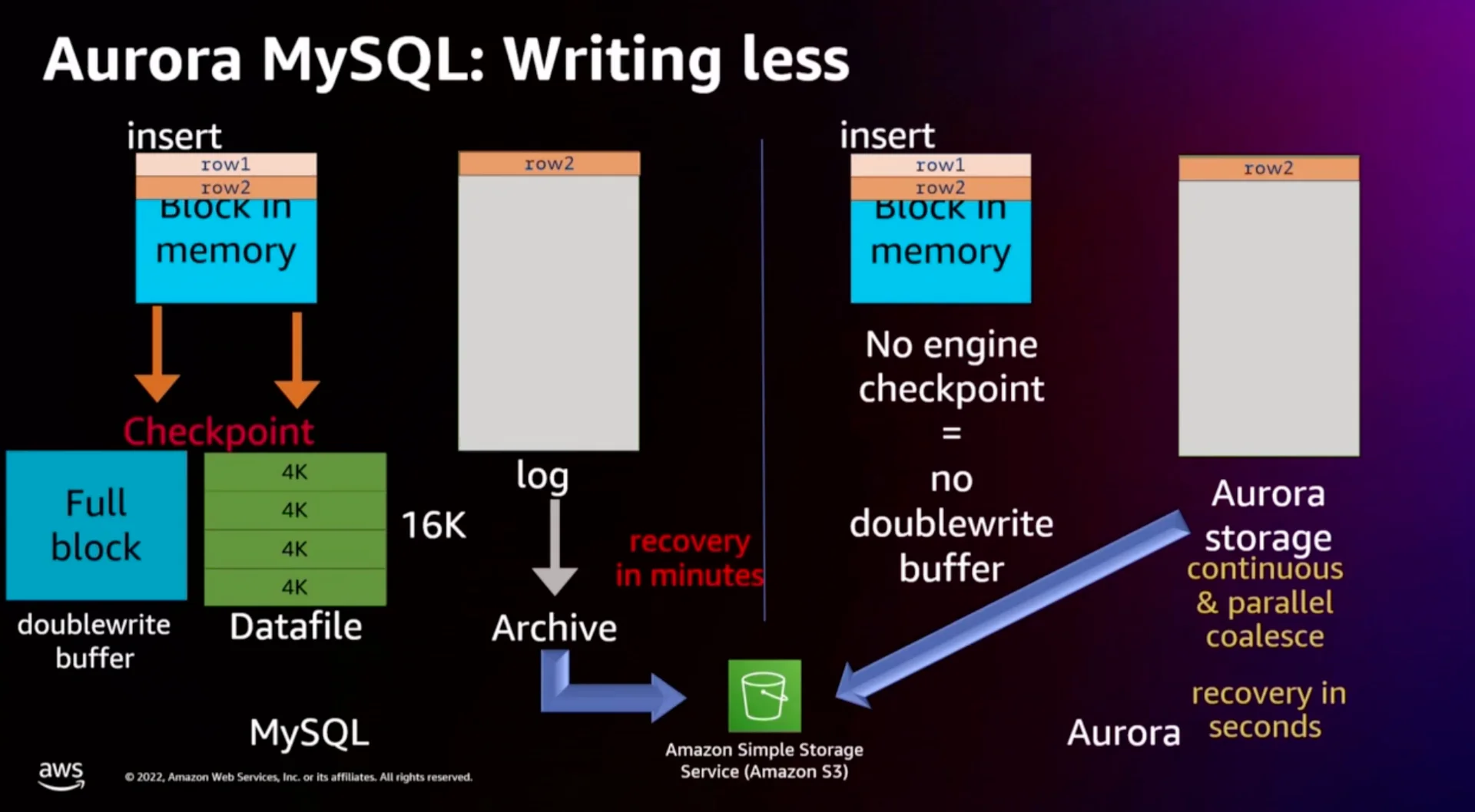 Aurora MySQL은 해당 개념을 사용하지 않아 속도가 더 빠릅니다.