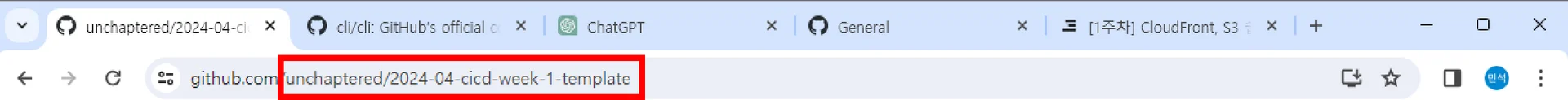 git clone https://github.com/<본인 GitHub UserName>/2024-04-cicd-week-1-template 예) git clone https://github.com/unchaptered/2024-04-cicd-week-1-template.git 2024-04-cicd-week-1-template-practice