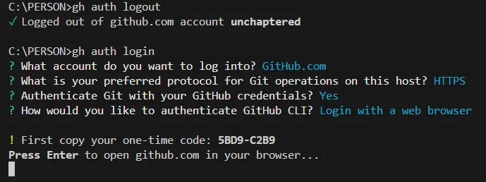 이 코드는gh auth login를 입력한 터미널에 출력이 됩니다.