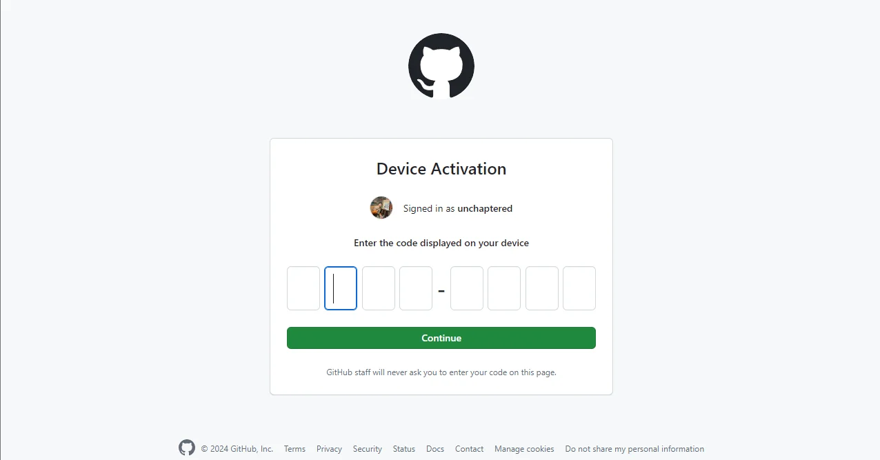 gh auth login을 입력하고 엔터를 쭉 누르세요.브라우저가 열리면 Device Activation 코드를 입력해야 합니다.