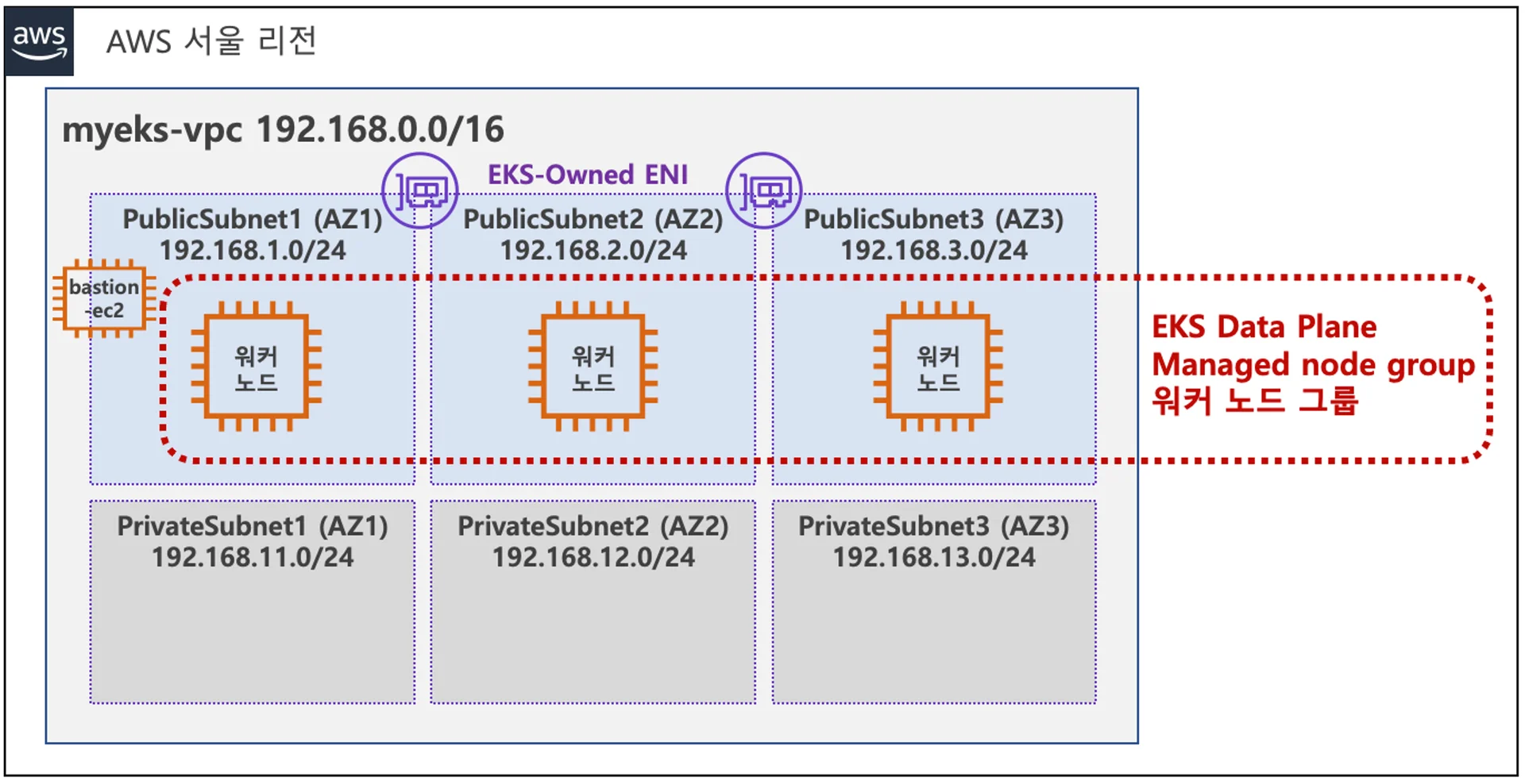 하지만 NAT Gateway은 추가 비용이 발생하는 관계로 Public Subnet에 Worker Node를 배포했습니다.