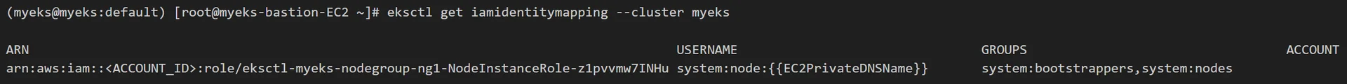 eksctl get iamidentitymapping --cluster myeks